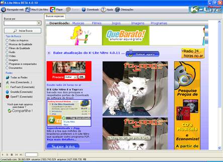 O Kazaa é um programa muito conhecido para troca de arquivos em rede P2P (ponto-a-ponto), onde você pode compartilhar músicas, vídeos, fotos e muito mais. Você pode fazer o download direto do site: www.kazaa.com.br